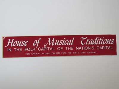 Bumper Sticker House Of Musical Traditions Folk Music Takoma Park Maryland Ebay